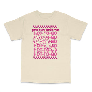 Turn up the heat with our 'Hot 2 Go' graphic tee, inspired by your favorite pop culture hit! This bold and playful design is perfect for those who bring the fire wherever they go. Whether you're running errands or out with friends, this tee combines comfort and a sassy attitude, letting everyone know you’re always serving looks and lyrics.
