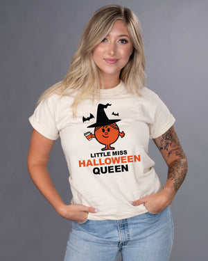 Mouths will drop when you strut into the room in this Little Miss Halloween Queen Shirt! Turn up as the spookiest girl in town in this graphic tee and show everyone who the real queen of Halloween is! Be spooky and stylish!