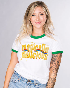 Leprechauns everywhere will be jealous of your style when you rock this Magically Delicious Ringer Tee. Perfect for any St. Patrick's Day celebration, this shirt perfectly pairs fun and fashion! Lucky you!
