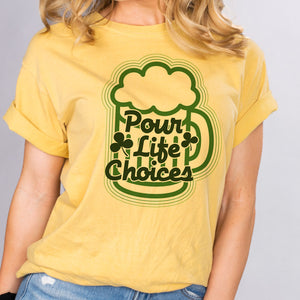 This Pour Life Choices Shirt is the perfect way to show you're ready for the luck of the Irish! Get your pour on in this cute drinking st. patricks day shirt - all the green beer for you!