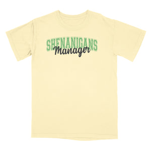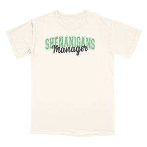 Take charge of the chaos with our “Shenanigans Manager” graphic tee. Perfect for St. Patrick’s Day festivities or any occasion that calls for a little fun, this tee is a playful way to show you’re always in control of the mischief. Made with ultra-soft fabric and a relaxed fit, it’s as comfortable as it is cheeky. Pair it with your favorite jeans or a festive skirt, and let the good times roll—because every crew needs a shenanigans manager.