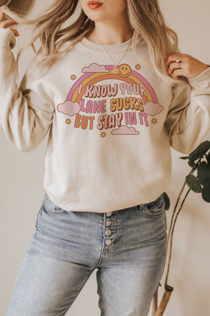This stylish sweatshirt is the perfect way to make your mark! Show off your sense of humor with this "I Know Your Lane Sucks but Stay in it" design and let everyone know to mind their own business!