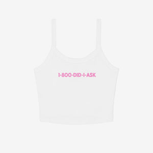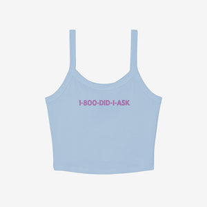 Serving hotline-level sass in this "1-800-DID-I-ASK" micro rib spaghetti strap tank. This ultra-soft, fitted top brings the attitude with a retro-inspired graphic and a whole lotta main character energy. Pair it with low-rise jeans and a smirk—you’re not here for opinions, you’re here for the looks.