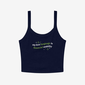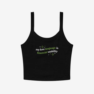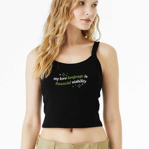 Secure the bag and the outfit with our "Financial Stability" embroidered spaghetti strap tank top. Perfect for the girl who knows that romance is sweet, but a solid bank account is even sweeter. This trendy, minimalist tank features delicate embroidery on a soft fabric that hugs in all the right places. Whether you're manifesting millionaire energy or just dropping hints, this top makes a statement without saying a word.