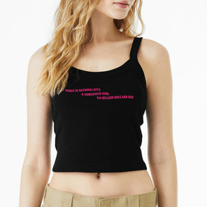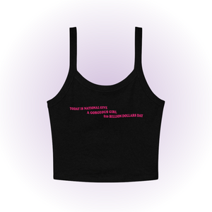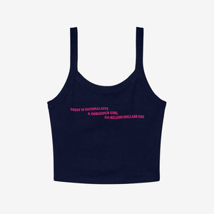 Today is National Give a Gorgeous Girl $10 Billion Day—and yes, we're talking about you. This ultra-soft micro rib spaghetti strap tank is your official uniform for being hot, hilarious, and highly compensated (in vibes or actual billions, your choice). Fitted, flattering, and ready to serve main character energy all year round. Wear it and manifest the lifestyle you clearly deserve.