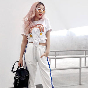 Start your morning off with style in this Breakfast Rainbow Shirt! Featuring all the brunch-time favorites - bacon, eggs, and rainbows, this shirt will make sure you look your best when you roll out of bed. Hungry for fashion? Get to brunchin'!