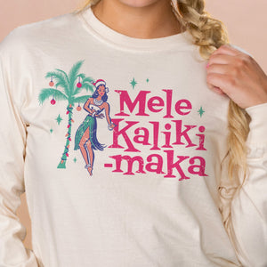 Tis the season for fashion! This Mele Kalikimaka Long Sleeve Tee is the perfect holiday shirt to make you stand out from the crowd. Dress up any outfit with this cute Hawaiian Christmas shirt, and have your friends jingle all the way! Ho ho ho!!!