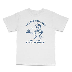 Serve up some sass with our "I Baked You Some Shut the Fucupcakes" Graphic Tee. Perfect for those with a sharp sense of humor, this tee combines witty wordplay with a bold, edgy design. Crafted from soft, breathable fabric, it’s ideal for making a statement while staying comfortable.
