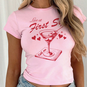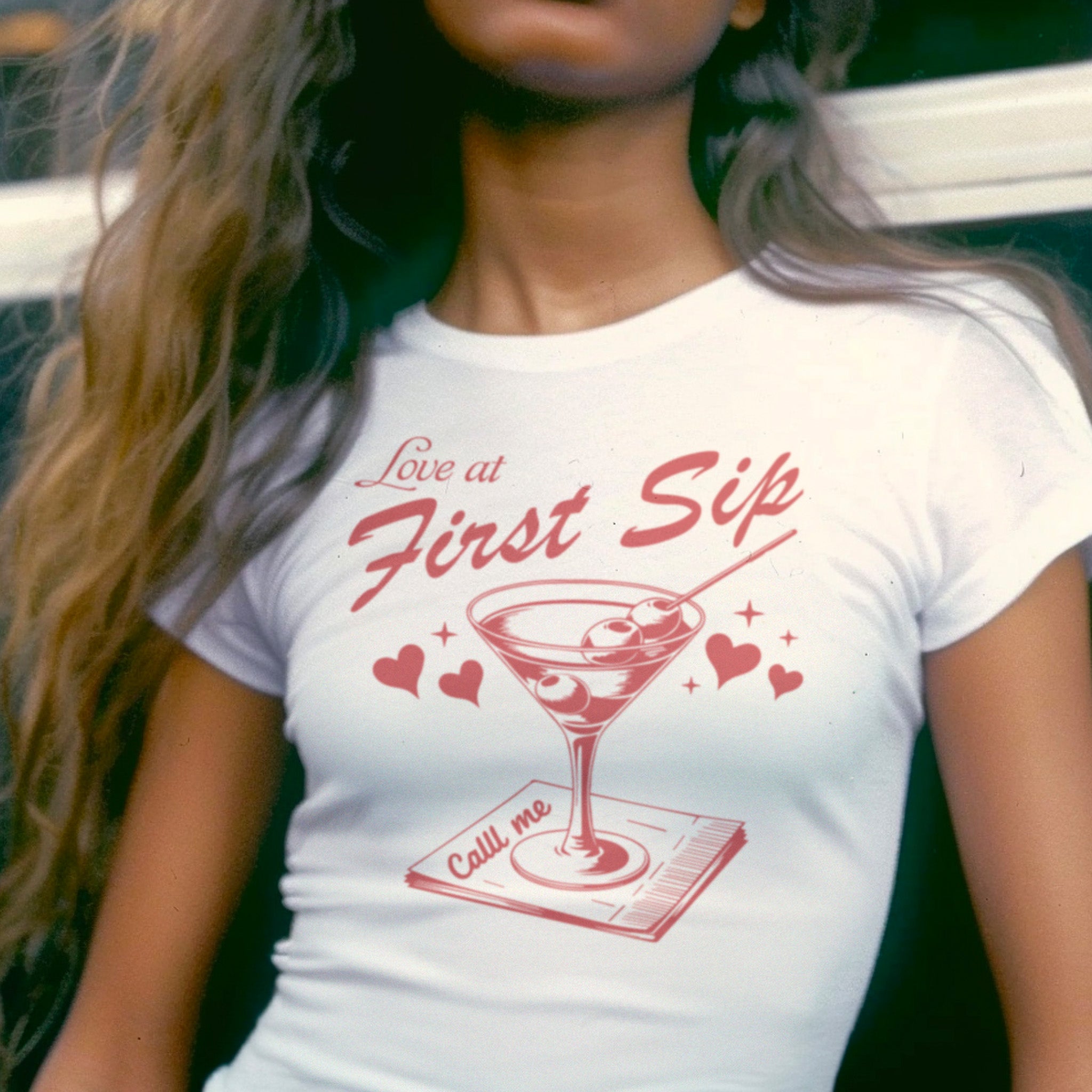 Fall head over heels for our "Call Me Napkin" women’s micro rib baby tee, blending playful martini vibes with a romantic aesthetic. Designed to flatter and charm, it’s the perfect top for love-filled celebrations and stylish everyday wear. Easy to style with jeans, skirts, or layered outfits for date nights. Ideal Valentine’s Day gift for her ~ girlfriends, wives, best friends, or martini lovers.