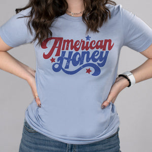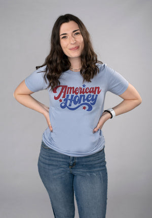 Show off your patriotism with this stylish American Honey Shirt! This retro-inspired look is perfect for celebrating the fourth of July or simply adding a bit of USA flair. Grab one and join the party, honey!
