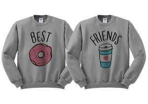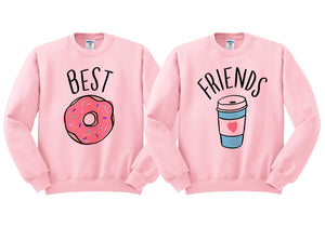 Share your love of coffee and donuts with your BFF in this hilarious matching sweatshirt set! Show off your passion for the perfect duo with a comfy and funny wardrobe choice that won't break the bank. Get the Best Friends Donut And Coffee Duo Sweatshirt Set and start seeing double donut-trouble everywhere you two go!