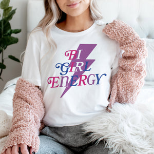 Show your bi pride with this fun "Bi Girl Energy" t-shirt! The perfect accessory for festivals, parades and other pride events! Be proud, be loud and show your support for the LGBTQ+ community!