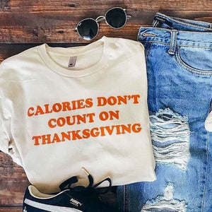 Give thanks for style – and for laughs – with this "Calories Don't Count On Thanksgiving" shirt! Perfect for a festive family gathering, this funny t-shirt keeps you looking stylish while reminding everyone that Thanksgiving is a time for indulgence and cheer. #thankful
