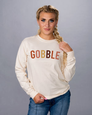 Show your love for the holiday season with this Colorful Gobble Long Sleeve! Featuring a gobble print and eye-catching colors, it's the perfect way to add some festive flair to your wardrobe. Get your gobble on!