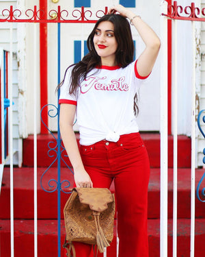 This Female Ringer Tee is a feminist fashionista's dream come true! With a trendy vibe and statement-making style, it'll make you feel as cool and empowered as you look.