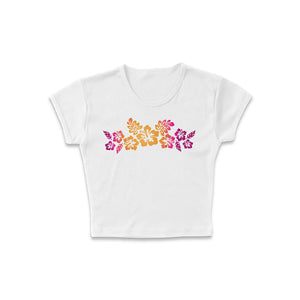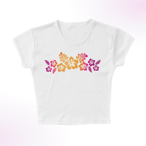Ride the wave of nostalgia with our "Hibiscus Flowers" graphic baby tee. Featuring vibrant hibiscus flowers in a classic Hawaiian surfer aesthetic, this fitted tee brings the spirit of early 2000s beach culture to your wardrobe. Crafted from soft, premium cotton for ultimate comfort and style.