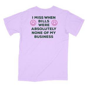 Nostalgia meets humor with our ‘I Hate Bills’ graphic tee. Perfect for anyone longing for the carefree days before adulting hit. This tee pairs effortlessly with jeans or lounge pants, bringing a soft, relaxed fit and a playful reminder of simpler times. Wear it and embrace the good ol' days when bills were someone else’s problem.