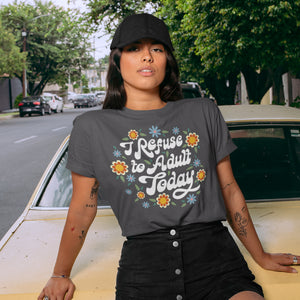 Achieve optimal Monday vibes with this "I Refuse To Adult" shirt! It's the perfect way to make a statement while rocking a funny shirt. No adulting required!