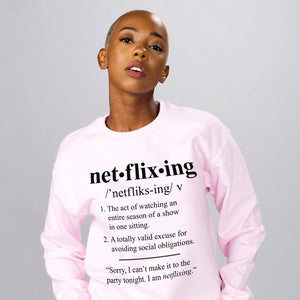 For anyone who is victim of netflixing on occasion – or on the daily for that matter. Wear this top that features a graphic defining what netflixing really means while binge-watching your favorite Netflix movies.
