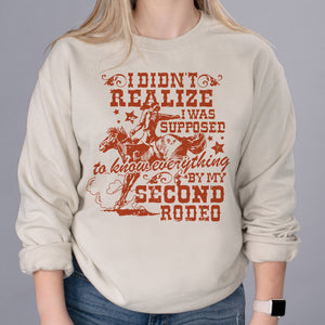 Show off your edgy sense of humor in our I Didn't Realize I Needed to Know Everything By My Second Rodeo Sweatshirt! This comfy crewneck makes a subtle statement that you've been around the block – and you're here to stay. Stylish enough for date night, casual enough for lunch with the squad.