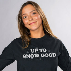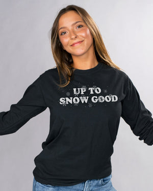 Keep temperatures low and your style high with this Up To Snow Good Long Sleeve! This funny winter snow shirt is sure to get your friends laughing and keep you warm. With a playful, quirky design, you'll be looking good and feeling warm!