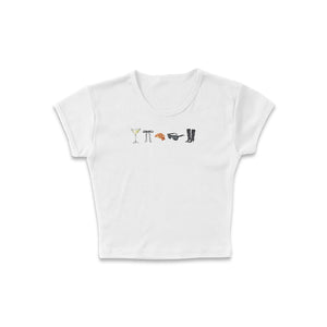 A little bit glam, a little bit reckless—this baby tee features a bold row of edgy doodles, including a dirty martini, a bow, statement boots, and sunglasses. Perfect for the girl who turns heads, this tee is soft, flattering, and made for making a statement. Pair it with your favorite mini skirt or vintage denim and let the world know you’re the main character.