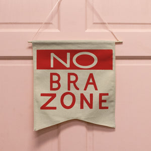 Bored with your walls? Wish there was more to them than just pictures that you still haven’t hung? Please meet the No Bra Zone Wallflower, not your average wallflower! A two-point, Guidon-style wall pennant with a dowel and ribbon for hanging. This is the perfect piece to add to your bedroom, bathroom, anywhere. Be cool, just hang.