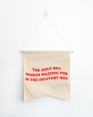 Bored with your walls? Wish there was more to them than just pictures that you still haven’t hung? Please meet the Only Boy Wallflower, not your average wallflower! A two-point, Guidon-style wall pennant with a dowel and ribbon for hanging. This is the perfect piece to add to your bedroom, bathroom, anywhere. Be cool, just hang.