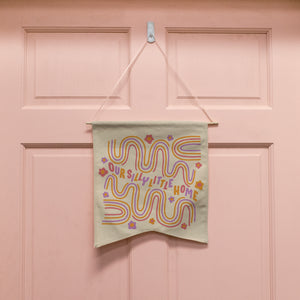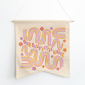 Bored with your walls? Wish there was more to them than just pictures that you still haven’t hung? Please meet the Silly Little Home Wall Hang, not your average wallflower! A two-point, Guidon-style wall pennant with a dowel and ribbon for hanging. This is the perfect piece to add to your home, office, babe cave, anywhere. Be cool, just hang.