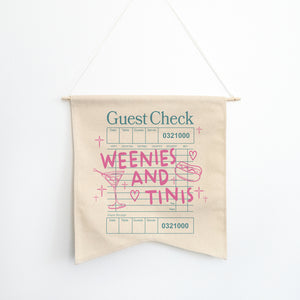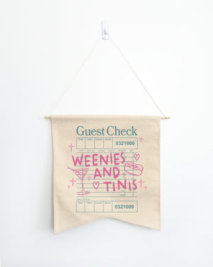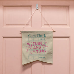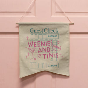 Bored with your walls? Wish there was more to them than just pictures that you still haven’t hung? Please meet the Weenies and Tinis Wall Hang, not your average wallflower! A two-point, Guidon-style wall pennant with a dowel and ribbon for hanging. This is the perfect piece to add to your home, office, babe cave, anywhere. Be cool, just hang.