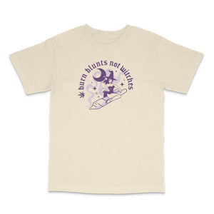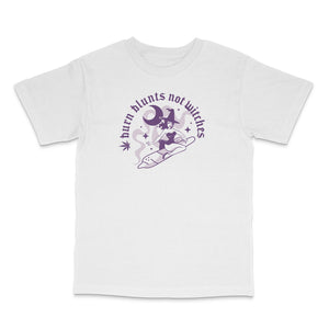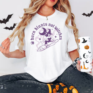 Light up the spooky season with our "Burn Blunts Not Witches" graphic tee! This bold and trendy shirt delivers a modern twist on Halloween with a message that combines humor and a touch of advocacy. It’s perfect for those who want to make a statement while keeping it fun and festive. Whether you're hitting up a Halloween party or just hanging out with friends, this tee is sure to spark conversations and smiles.