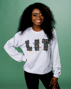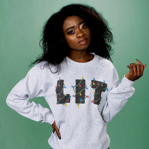 This Christmas, it's time to get LIT! This cozy crewneck sweatshirt is sure to brighten up the holiday season with its array of colorful Christmas lights – and of course a bit of bold attitude. It's sure to spread some festive puns and laughter!