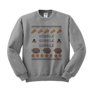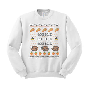Some people just go all out for every holiday. If you are one of those people this is the shirt you need to be wearing on Thanksgiving Day! The cross-stitch sweater reads “Gobble Gobble Gobble” with turkeys, slices of pie, pilgrim hats and pumpkins in true ugly sweater fashion. Happy Turkey Day!