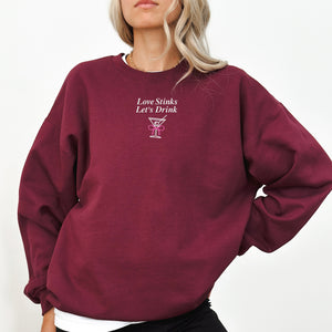 Our "Love Stinks, Let’s Drink" embroidered sweatshirt is perfect for anyone skipping the romance and going straight to the fun. Made from ultra-soft fabric with chic embroidery, it’s cozy, stylish, and perfect for a night out—or in. Whether you're raising a glass with friends or sipping solo, this sweatshirt is the ultimate statement for anti-Valentine's vibes.