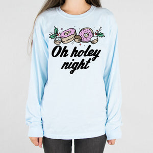 This delicious and festive Oh Holey Night tee is the perfect way to show your holiday spirit! Perfect for a night of caroling or a casual Christmas party, this cute donut Christmas shirt will make you look (and feel!) oh-so-festive. Get ready to jingle and mingle!