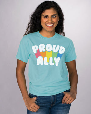 Show your true colors with this Proud Ally Shirt! This comfy cotton T-shirt lets you proudly declare your support for the LGBTQ community and make a bold statement – with style. Rock out with rainbow pride!