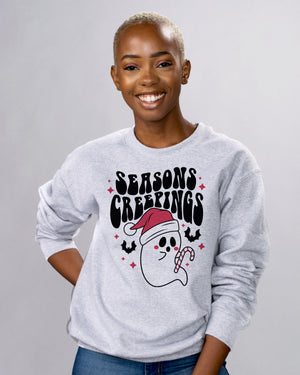 This Seasons Creepings Crewneck Sweatshirt is the perfect way to "haunt" in holiday cheer. With the spooky ghost design, it's a cozy reminder that Christmas is upon us. So don't waste any time - grab one of these bad boys and get your ghoul on!