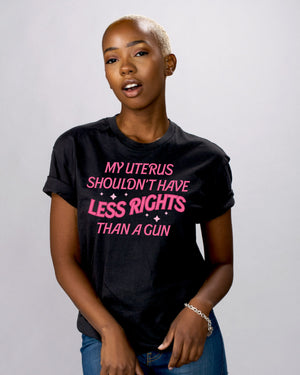 Stand up for womens' rights in style with this sassy, "Uterus Shouldn't Have Less Rights" shirt! Show the world that you support women's rights. A must-have for anyone passionate about women's liberation!